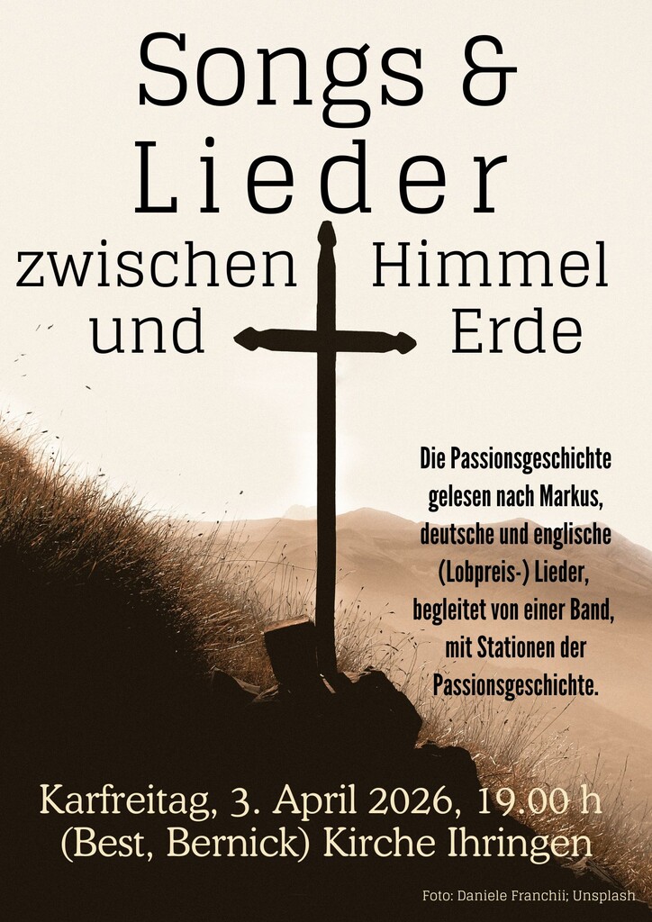 Am Abend des Karfreitag, den 3. April, findet wieder „Songs und Lieder“ in der Ihringer Kirche statt: